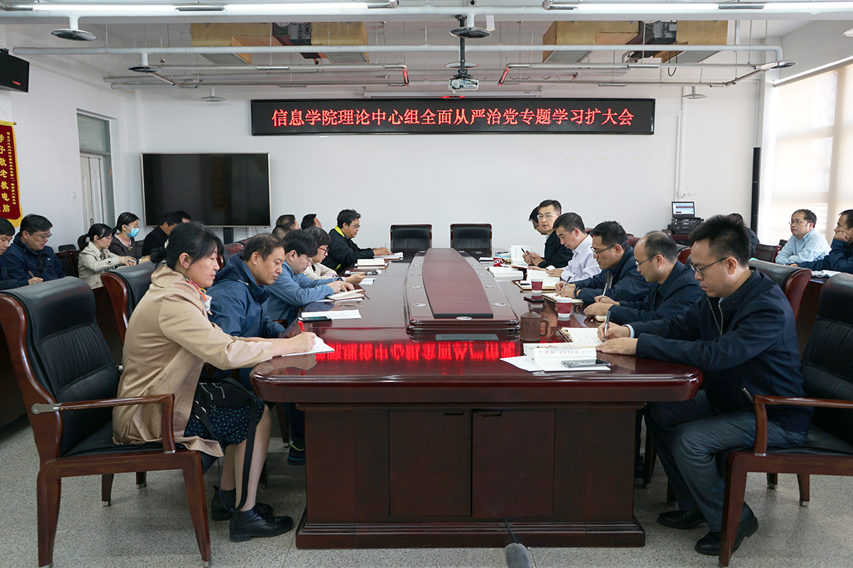 10月12日,信息公司党委理论学习中心组成员在瀚学楼1014会议室召开公司理论学习中心组集体学习(扩大)会,专题学习《习近平谈治国理政》第三卷第19专题“不忘初心、牢记使命,把党的自我革命推向深入”中关于“全面从严治党”的系列文章。公司党委理论学习中心组巡听工作小组成员、公司各系(中心)主任、各学科责任教授和教工党支部书记列席会议。会议由公司党委书记王月海主持。