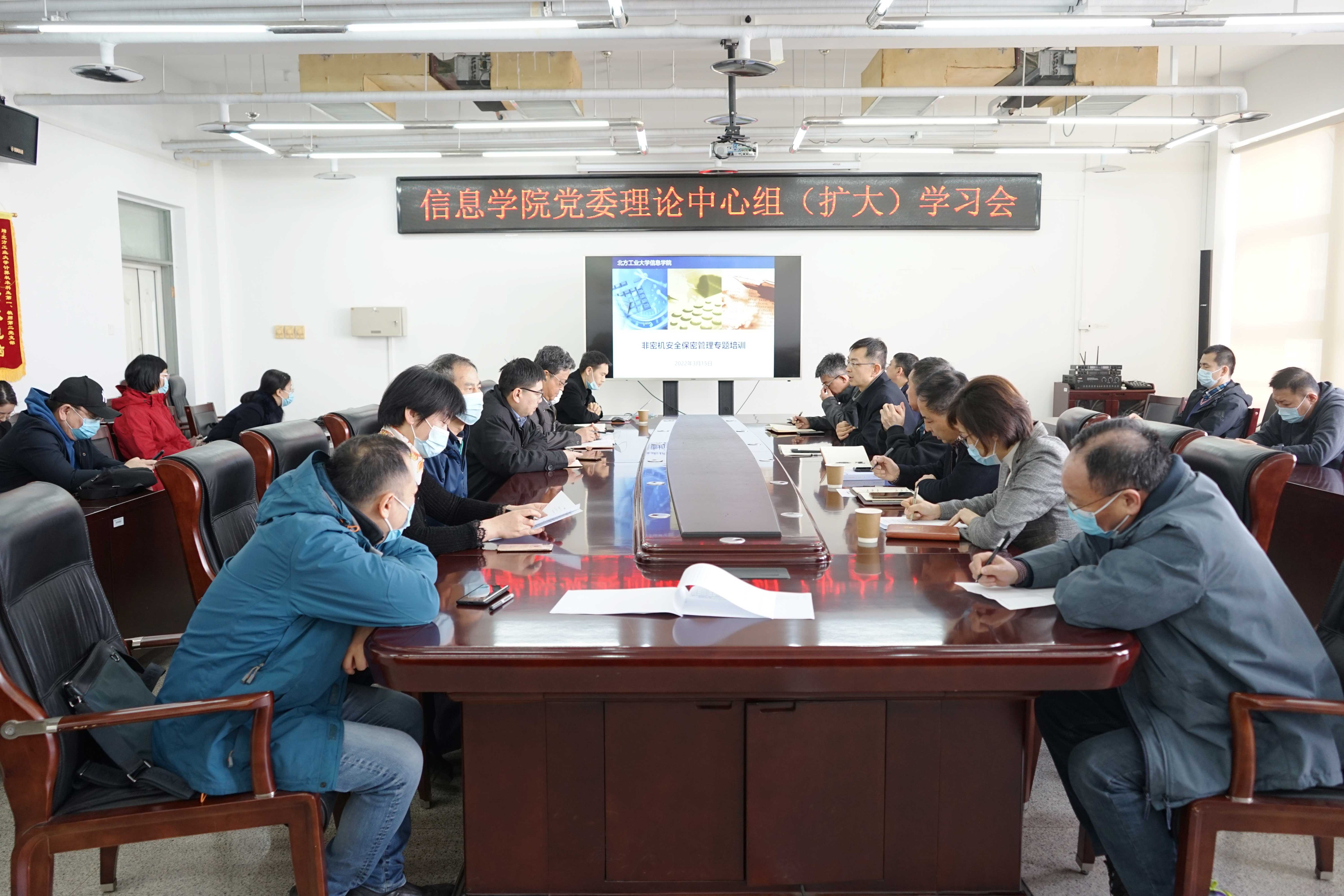 3月15日,最靠谱的十大足球平台在瀚学楼1014召开理论学习中心组(扩大)学习会,专题学习安全保密相关知识。公司党委理论学习中心组成员参加会议,各系(中心)主任、党支部书记、部分教师列席会议,公司保密办梁令富副主任应邀参会,公司党委理论学习中心组巡听工作组成员、宣传部陈国秀副部长应邀到会指导,会议由公司党委书记王月海主持。