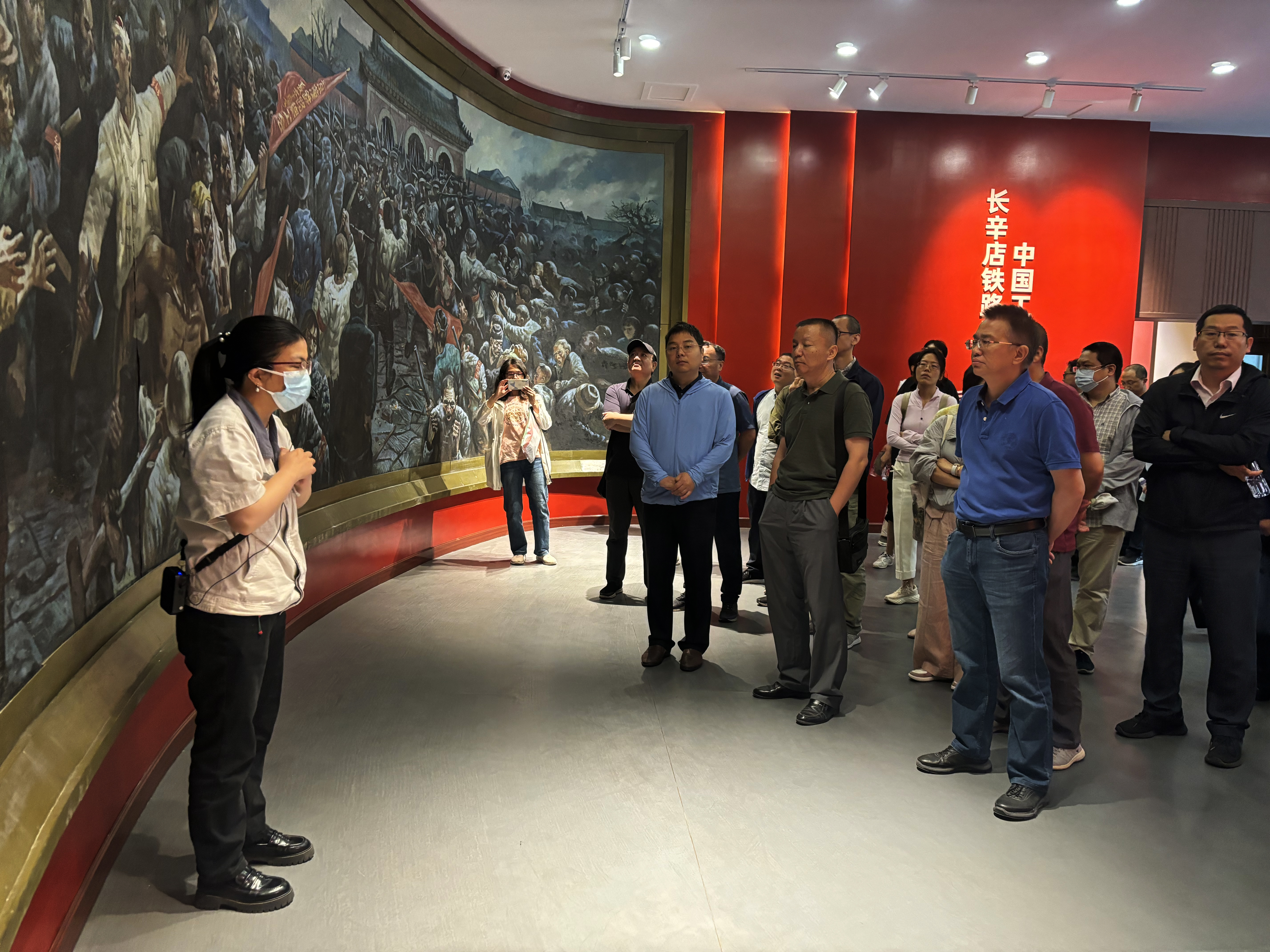 在讲解员的带领下,我们走进“北方的红星——长辛店与中国工人运动”专题展览馆。大家通过一件件实物、一张张照片重温长辛店铁路工人参加五四运动、创办长辛店劳动补习公司、创建长辛店工会、建立工人中的党组织、开展长辛店铁路工人罢工以及参加京汉铁路工人大罢工等革命事迹,详细了解中国共产党领导北方工人运动的光辉历史,感受先烈们“天下兴亡、匹夫有责”的担当精神,百年前设计独特的工会会员徽章、简洁有力的二七歌谣、“二七惨案”发生时老工人身穿的衣帽、传递工人运动信号的铜制汽笛等重要文物给全体党员留下了深刻的印象。