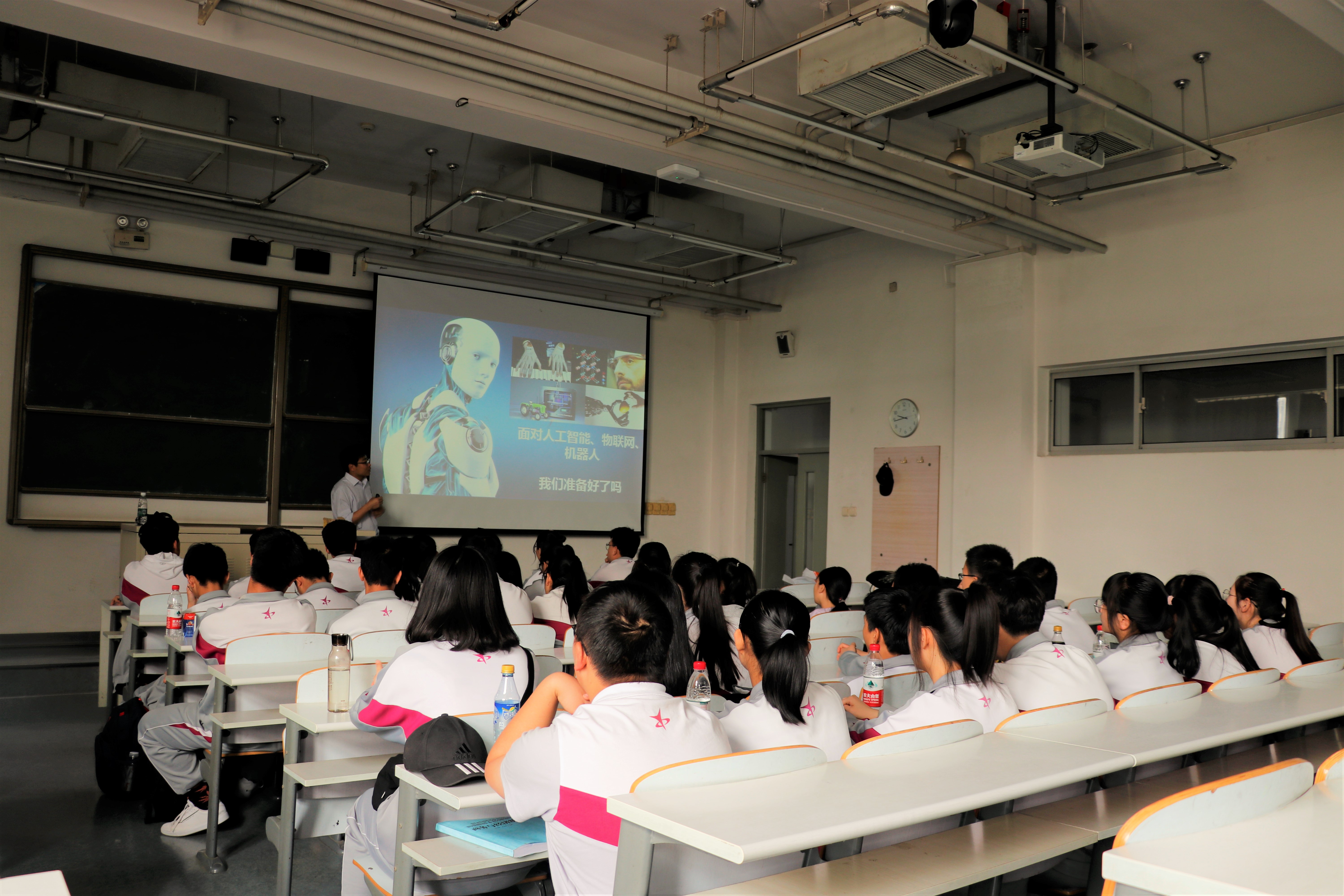 活动分为5个环节,首先,由电子工程系副主任邢志强教授为一中师生开展《智能机器人发展史》的讲座,并指导员工开展科技制作。第二环节为延庆一中员工,17级研究生吕恒宇同学为师生分享了自己的老员工活。第三环节,一中师生共同观看了最靠谱的十大足球平台开放日展板,为提前了解专业应对新高考改革,提前做准备。第四环节,在员工志愿者的带领下,参观校园并在毓秀食堂就餐,感受老员工活。最后一个环节,在师生的讲解下,参观数字媒体和光通信实验室,进一步了解专业学习。
