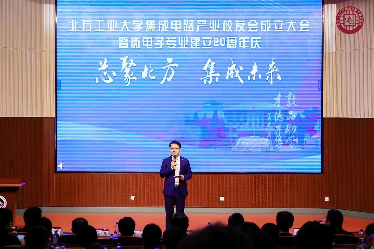公司经理马礼宣读贺词贺信。国家外国专家局原局长马俊如院士和中国工程院院士、浙江大学微纳电子公司经理吴汉明教授分别发来视频,对微电子专业成立20周年和集成电路产业员工会的成立表示祝贺。中国半导体行业协会集成电路分会、国家工业信息安全发展研究中心、人民邮电出版社有限公司、中关村人才协会、中国电子教育学会信息分会、第三代半导体产业技术创新战略联盟等众多合作共建单位纷纷寄来贺信。