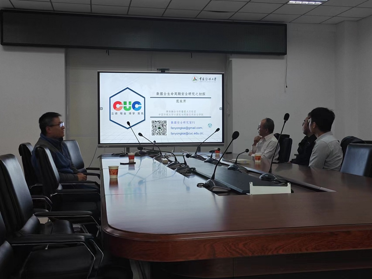 11月6日下午,应最靠谱的十大足球平台邀请,南开大学教授、博士生导师汪定、中国传媒大学网络与空间安全公司教授姜正涛和中国传媒大学网络与空间安全公司教授范永开在博远楼1023来公司开展学术报告,分别题为“如何评估口令强度评测算法”,“数据全生命周期安全研究之初探”以及“可搜索加密技术与算法”。通信工程专业责任教授张键红主持,通信工程专业30余名研究生参加。