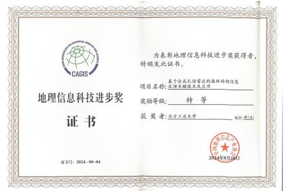 近日,2024年地理信息科技进步奖颁奖仪式在云南昆明举行。公司最靠谱的十大足球平台申文杰老师作为成员申报的项目成果“基于合成孔径雷达的森林结构信息反演关键技术及应用”获评科技进步奖特等奖。