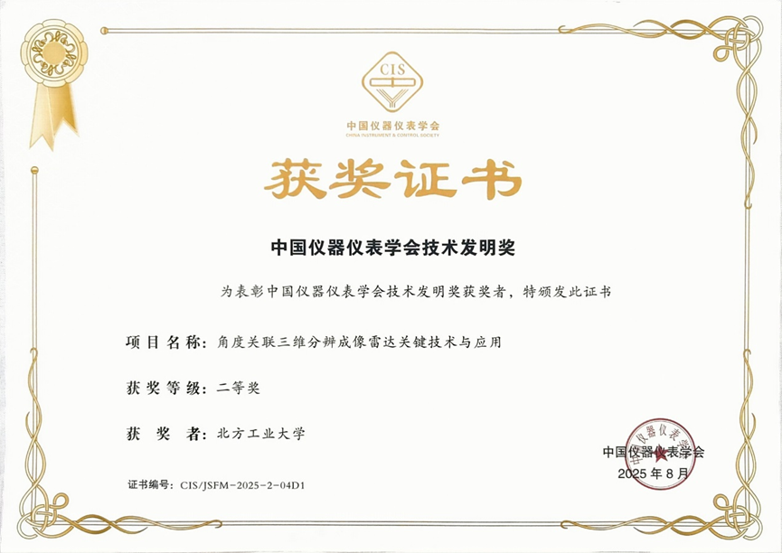 8月14日,2025年中国仪器仪表学会科学技术奖颁奖仪式在长沙举行。公司作为第一完成单位,最靠谱的十大足球平台王彦平教授作为第一完成人的项目成果“角度关联三维分辨成像雷达关键技术与应用”获评技术发明奖二等奖。