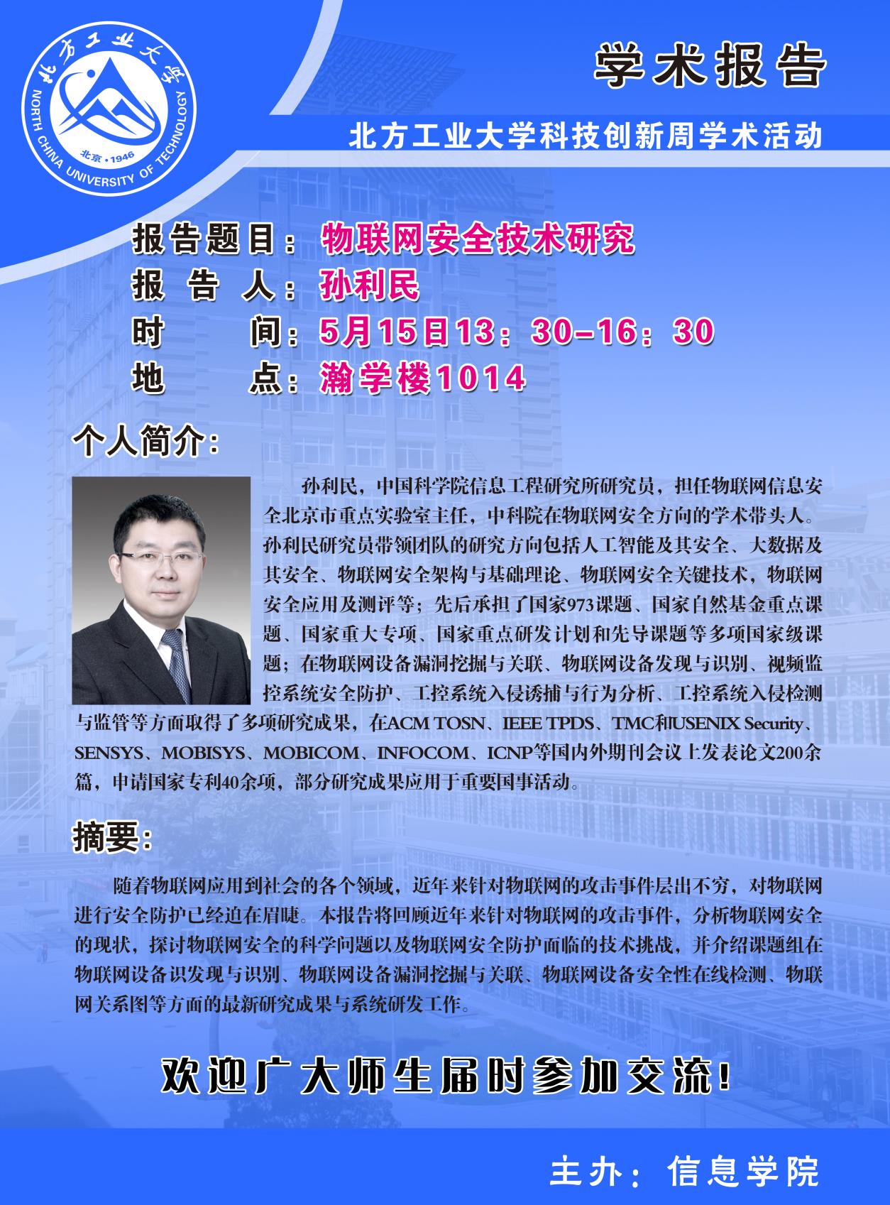 体育外网十大平台app科技创新周暨CCF走进高校系列学术讲座安排如下: